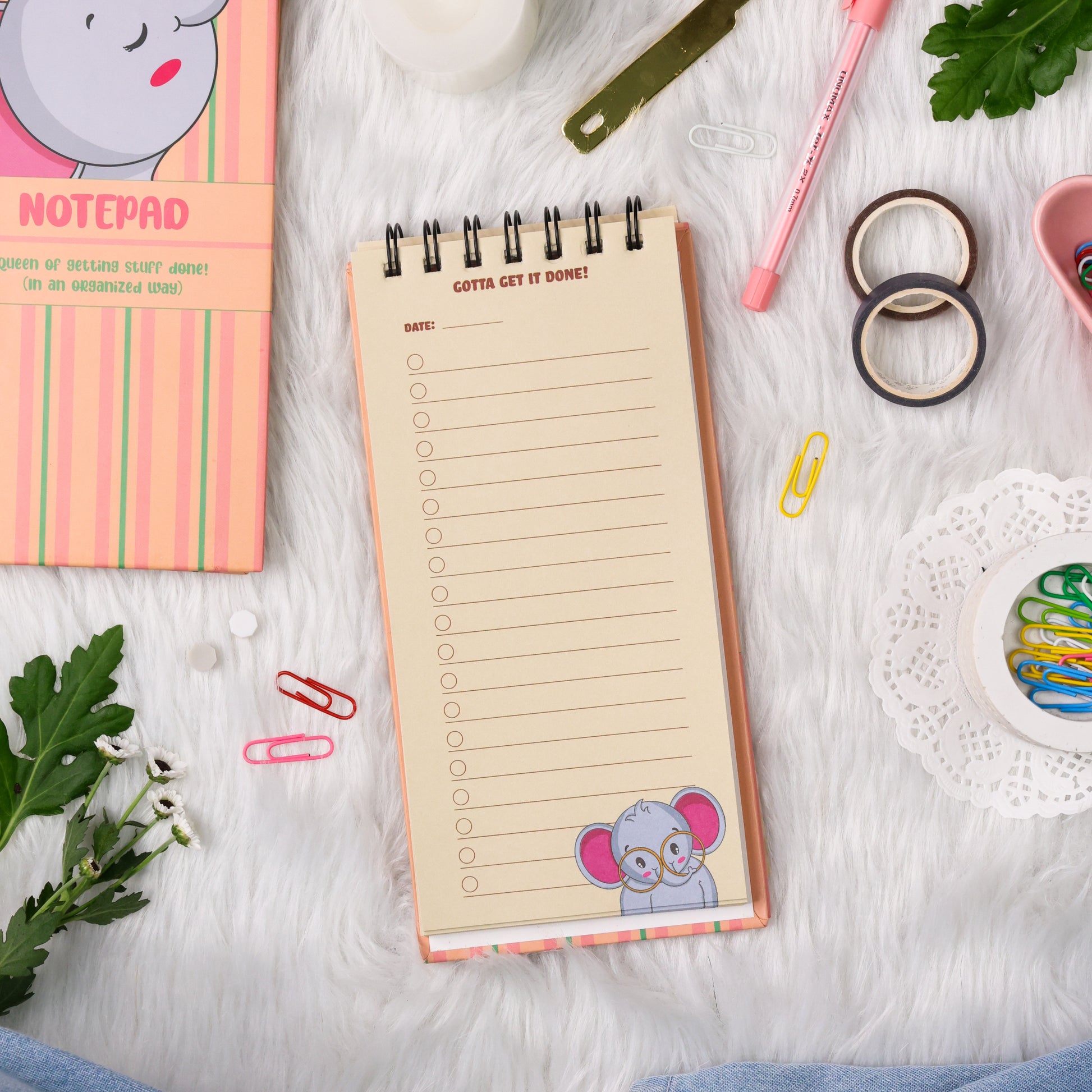 Keep your days organized and your tasks on track with the Her Majesty's Notepad Designed for simplicity and focus, this notepad makes it easy to jot down daily tasks and goals all in one place. Each page is structured to help you prioritize your time, set clear goals, and enjoy checking off completed tasks.