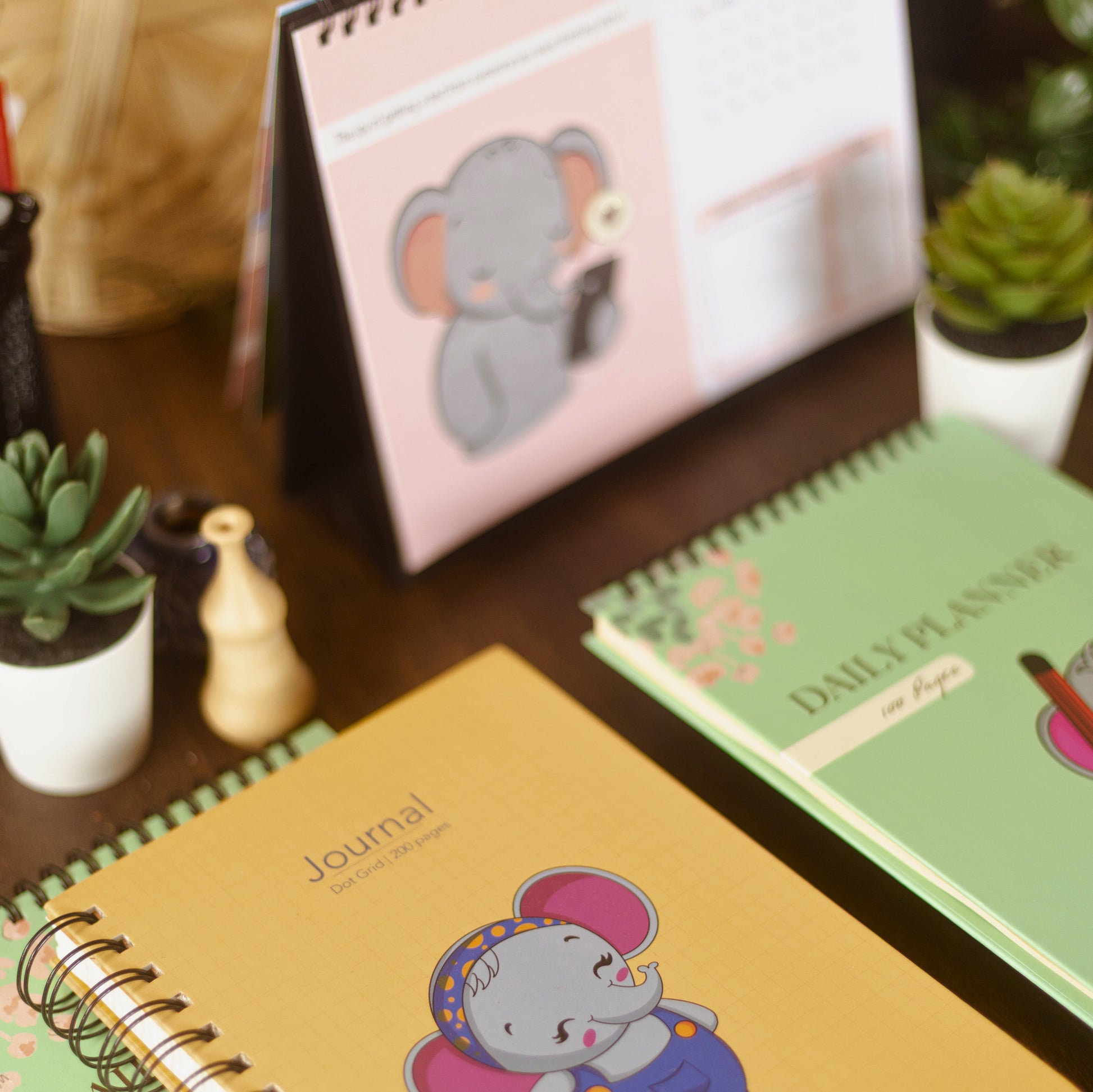 🩵 A Journal of your choice — filled with fresh elephant illustrations on every page