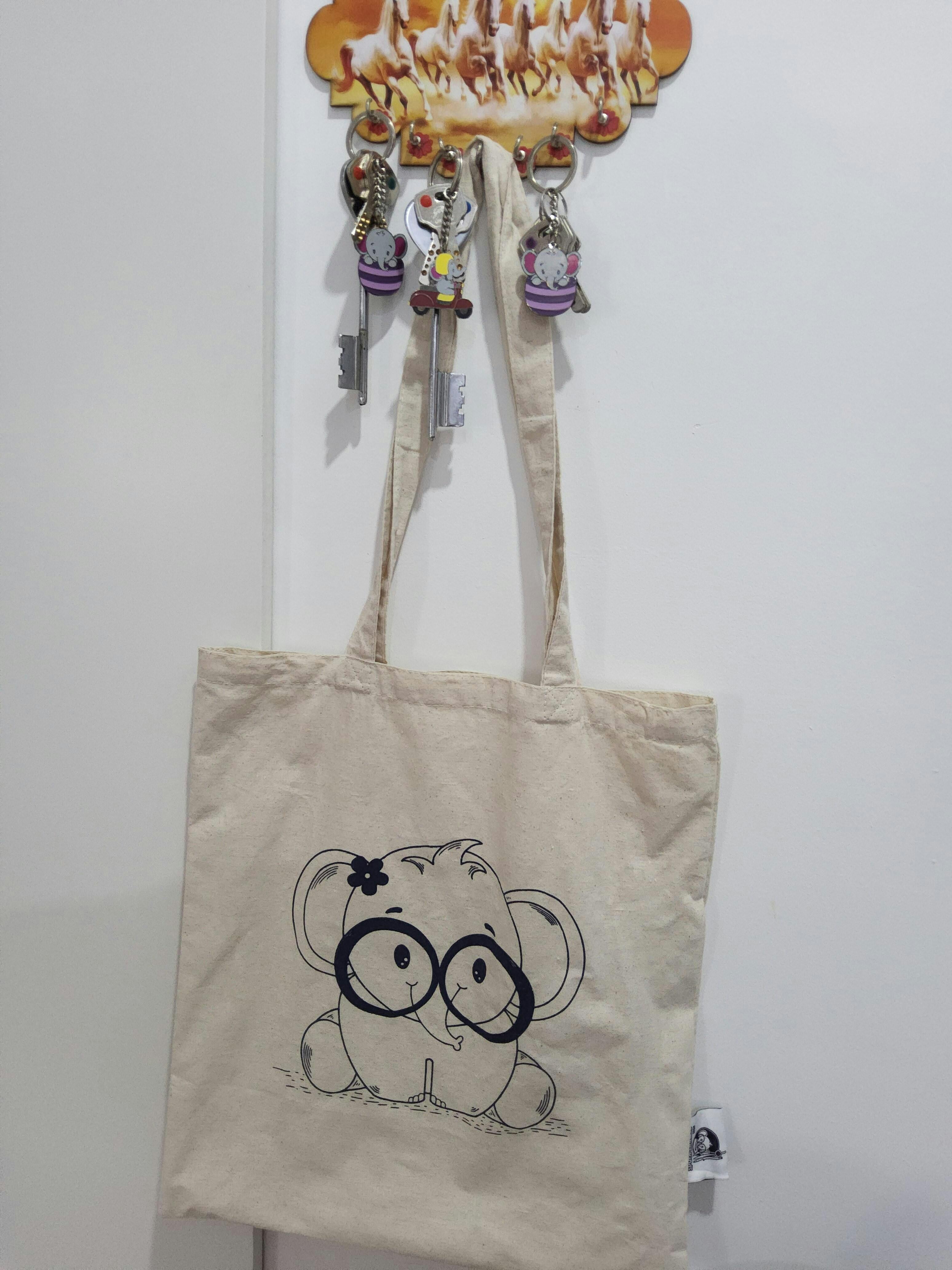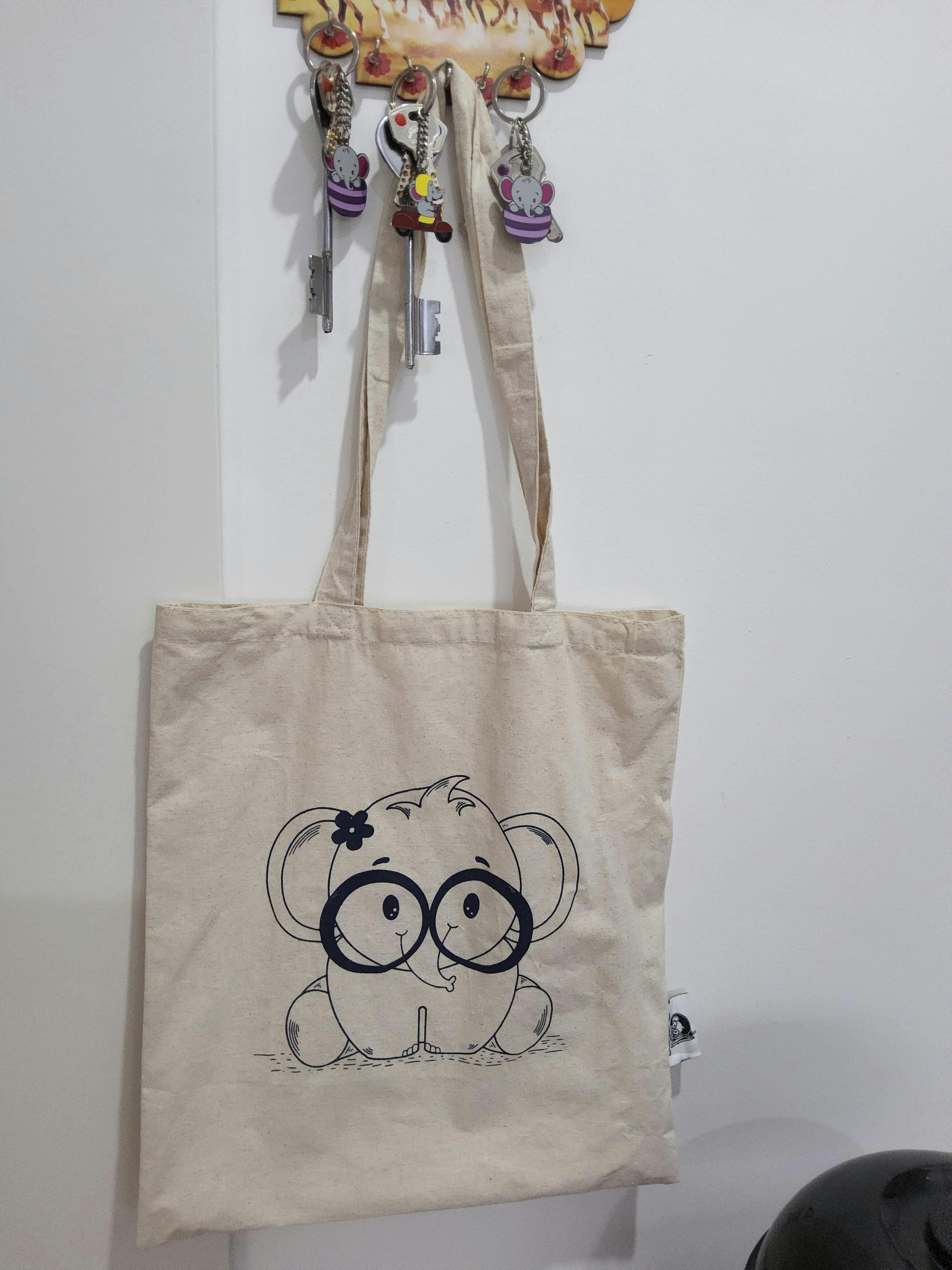 Who says you can't be environmental conscious AND cute at the same time?! This absolutely adorable curious baby elephant Tote bag helps you get some high cuteness quotient PLUS helps you lead a sustainable life.