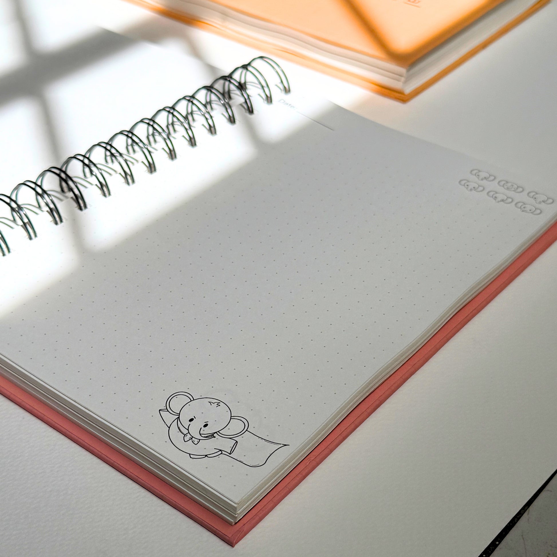 Dot Grid with a little elephant in the corner (each page has a new elephant surprise!)