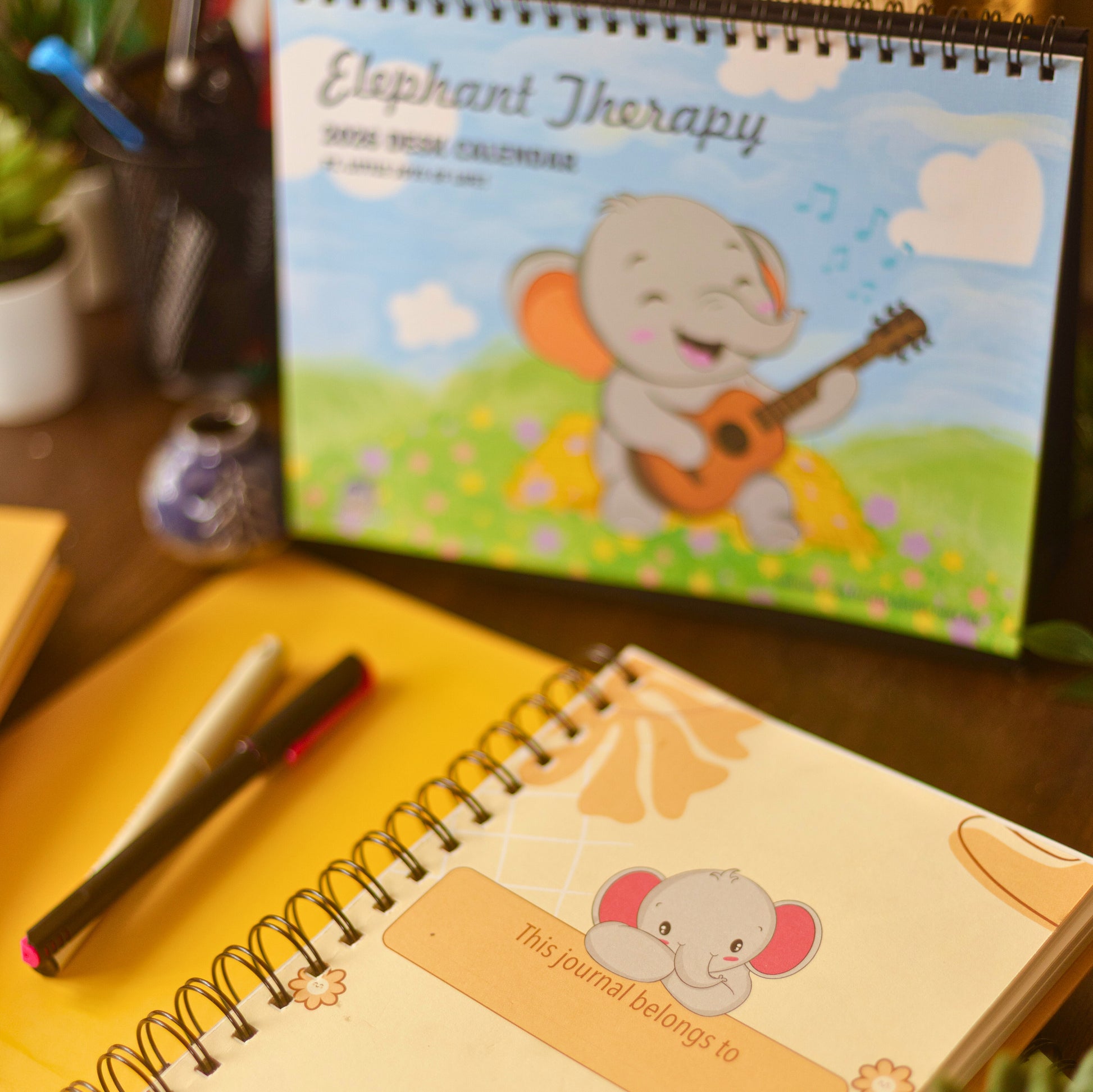 Keywords: stationery gift box, self-care stationery set, elephant therapy bundle, calendar planner journal set, joy stationery kit, mental wellness gift.